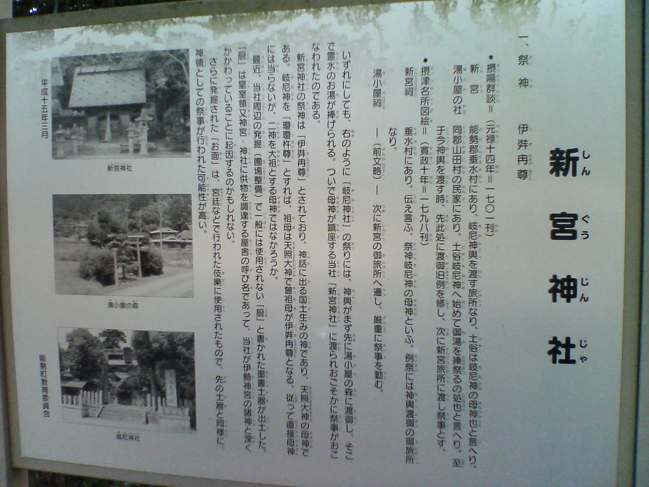 新宮神社と書かれた看板は、けっこう新しい。写真ものっている。